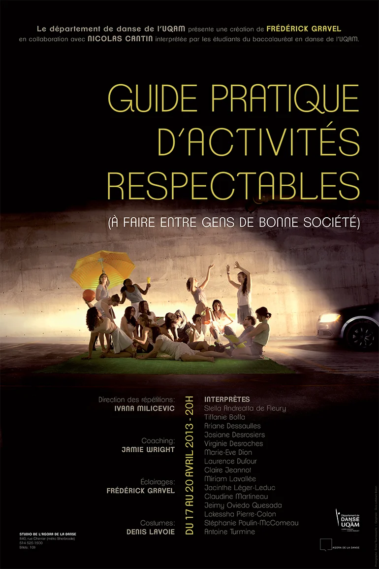 Poster et Photographie pour "Le guide pratique d'activités respectables" Spectacle du département de danse de l'UQAM.
